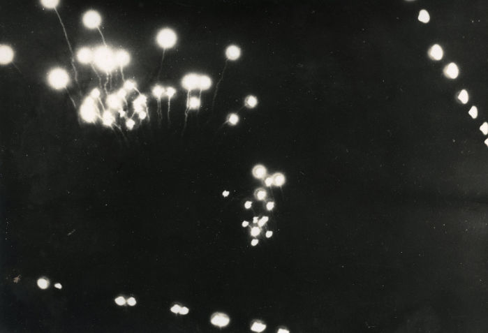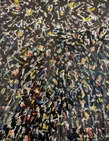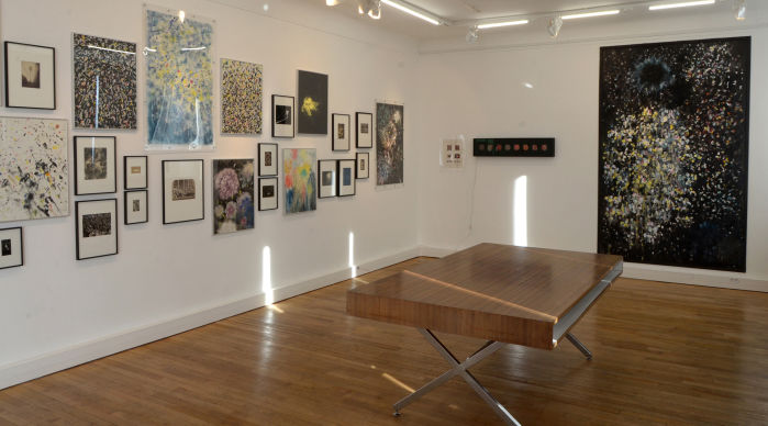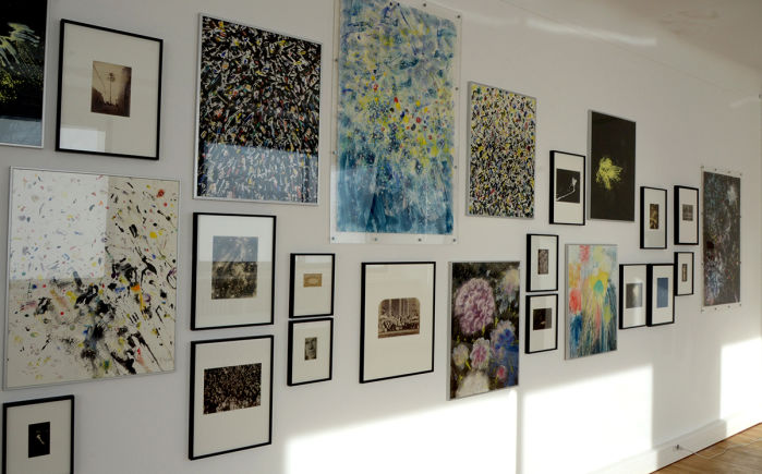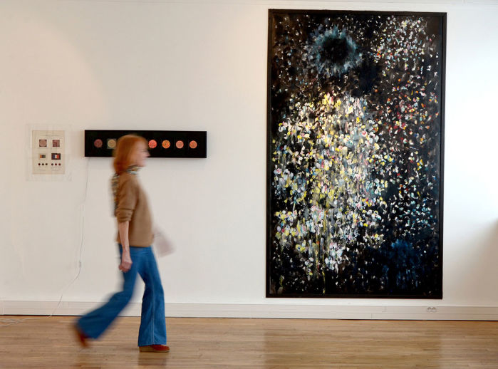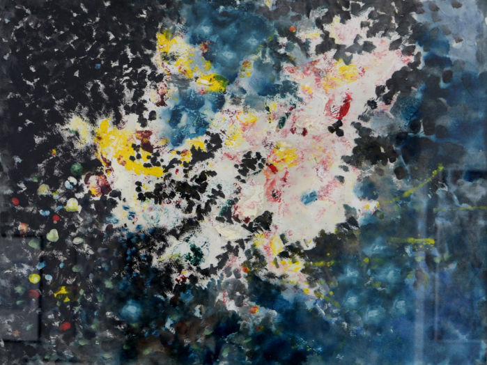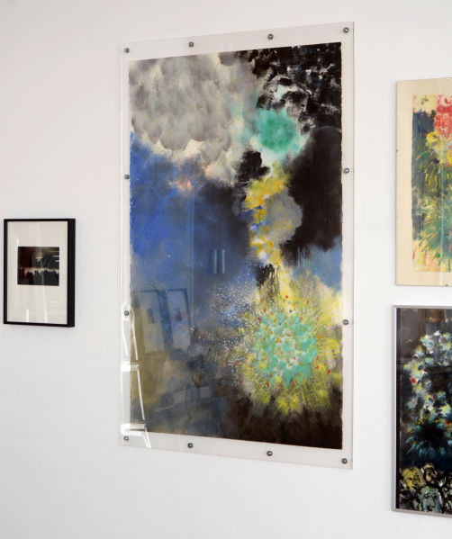 C'est dans son atelier de Draveil que Xavier Combes a allumé dans nos yeux des étincelles en dévoilant le travail qui l'occupe depuis plusieurs années : peindre des feux d'artifice, leur alchimie chromatique, leurs ultimes points de retombée.
