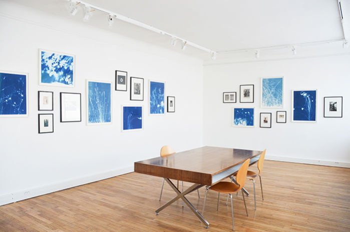 Faire dialoguer ses derniers travaux – des pièces uniques issues d’une technique primitive – avec sa collection de photographies anciennes nous a paru dans l’ordre naturel des choses concernant Simone Kappeler. Le mélange fonctionne à merveille, le bleu de Prusse et les teintes sépia des photos du XIXème siècle se réchauffant mutuellement. Ce jeu de miroirs ne dit pas tout, mais un peu plus sur ce qui agite, inspire, fait rêver cette photographe libre comme l’air.